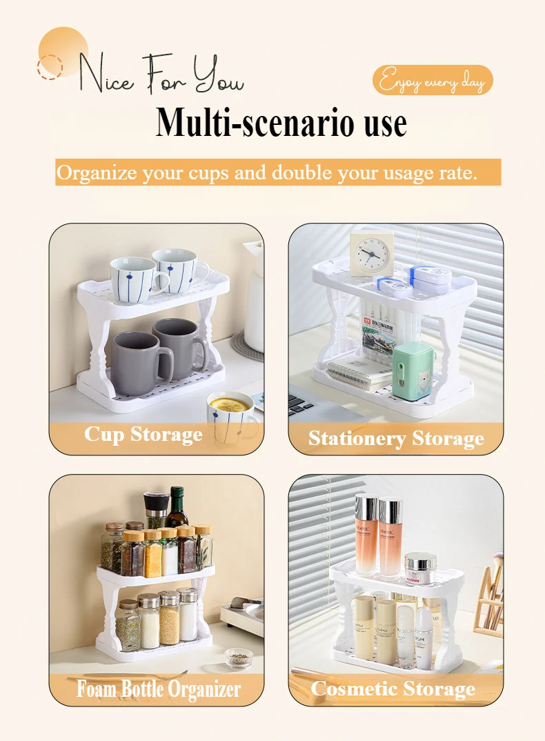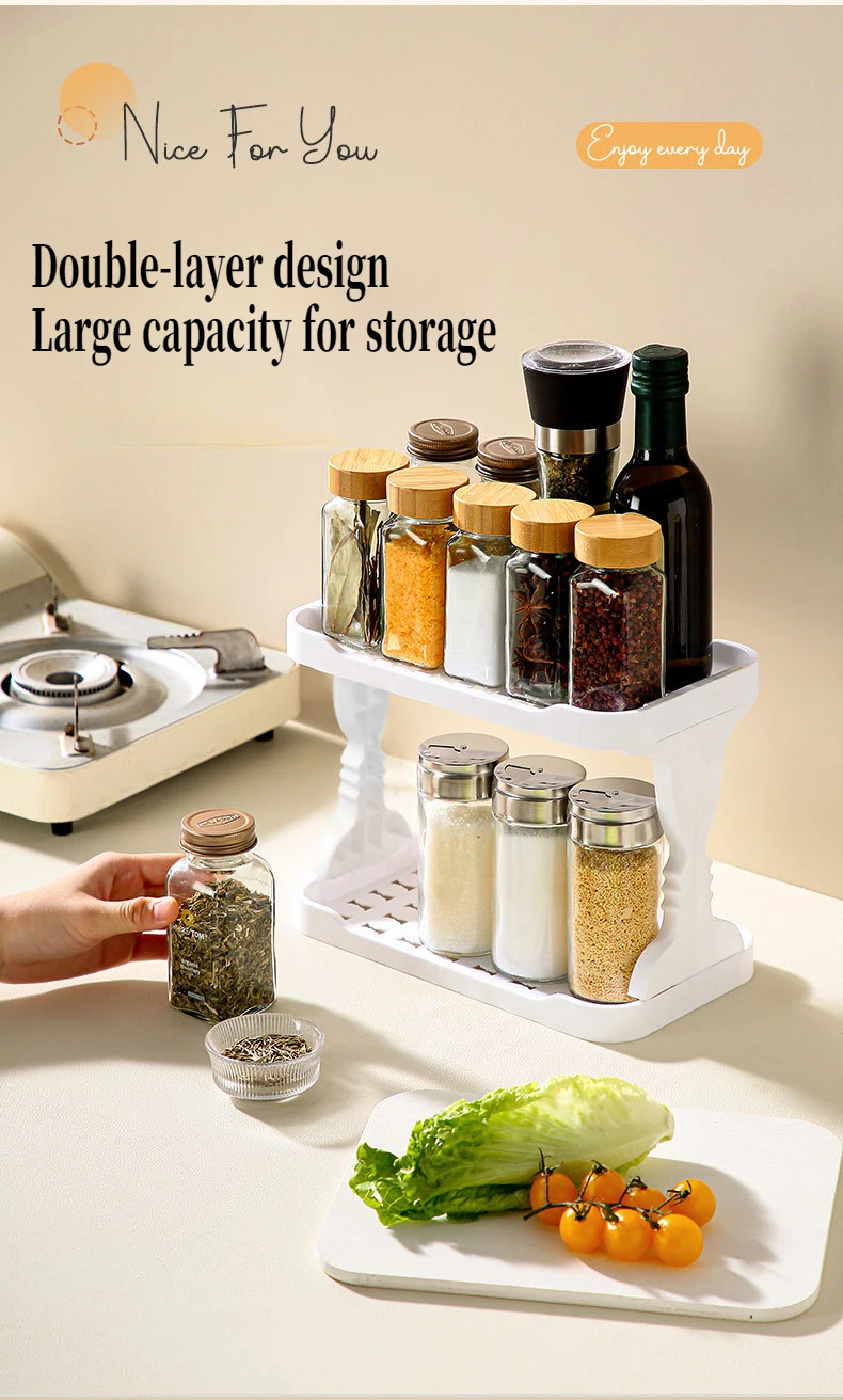 1 PC Kitchen Shelf Spice Storage Rack Double Household Countertop Organizer Drainage Cup Holder Organizer Kitchen